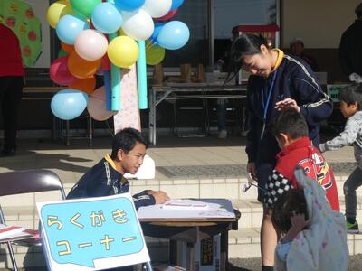 また、4名の生徒がボランティアとして参加しました。金田北中学校の生徒さんと共に笑顔で活動していました。