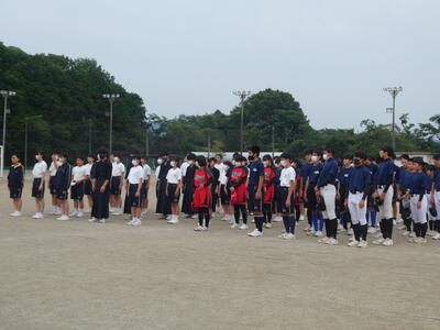 部活動壮行会 投稿: 金田南中学校 (2023/06/08) カテゴリー: 部活動 6月9日(金)からの総合体育大会に向け、生徒会主催の壮行会が行われました。 各部ごとにユニフォームや練習着を着て集合し、校長先生のお話の後、各部の部長から意気込みが発表され、全校生が円陣を組み、士気を高めました。 3年生にとって一番大切な大会です。心よりの応援お願いいたします。 -