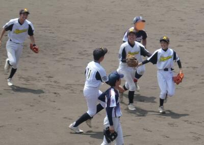 野崎中との合同チームで三島中と対戦。6回まで2対2のシーソーゲーム。