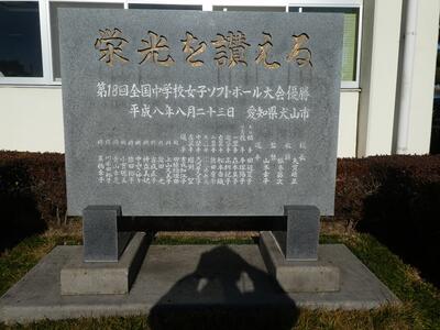 きれいにして金色が浮かび上がった平成8年度全国優勝記念碑