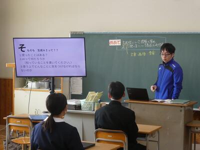 今回は1年生に理科の教育実習生。初日は自己紹介と授業参観。少し緊張気味でした。