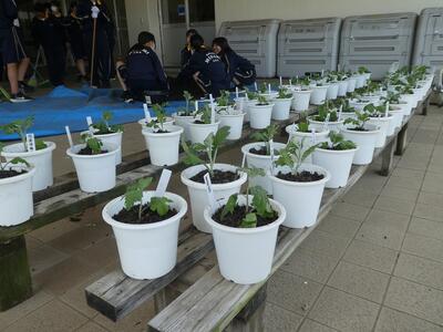 5月29日(木)2年生の技術で菊の鉢上げを実施しました。