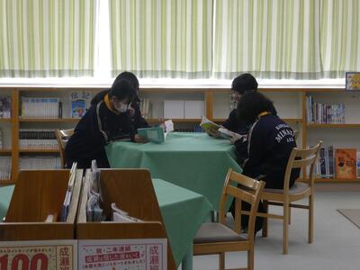 図書室で読書する1年生