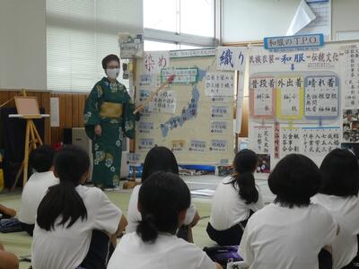 和装文化伝承会の皆さんが講師となり、着物文化についての説明と着付け体験。