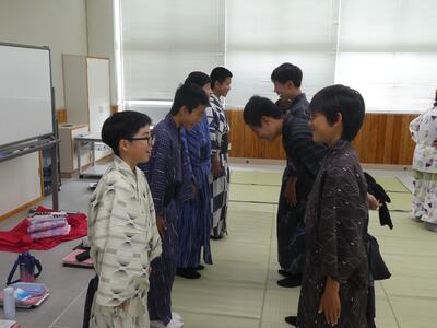 6月23日(月)、1年生の家庭科で浴衣着付け体験教室を実施しました。