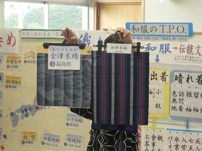秋の遠足で訪れる会津の織物も紹介
