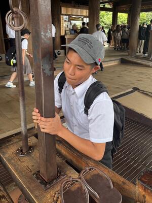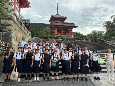 3年生の修学旅行2日目は、京都班別研修です。はじめに全員で清水寺を見学し、住職様のお話を聴きました。その後、班別にタクシーでそれぞれの計画に従って行動します。