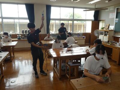 1年生は木工作品づくり、2年生はラジオ作りをしていました。
