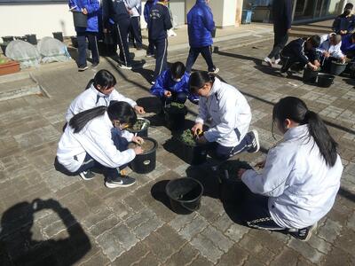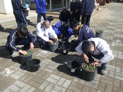 2月19日(木)2年生最後の菊作業を行いました。