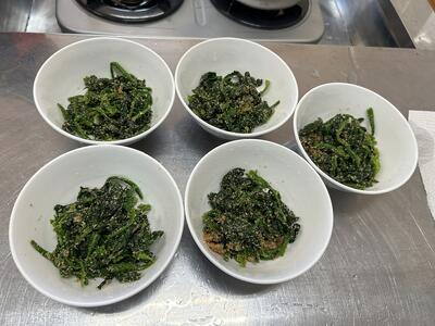 1年生の家庭科で、肉じゃがとほうれん草のごま和えを作りました。
