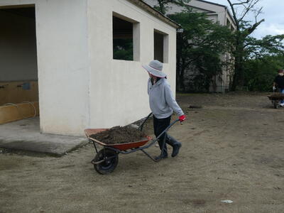 昨晩に降っていた雨も上がり、朝7:00からPTA奉仕作業が行われました。