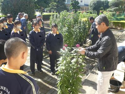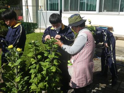 2年技術 菊の輪台付け 投稿: 金田南中学校 (12:40) カテゴリー: 2年生 10月24日(金)、2年生の技術の菊作りも大詰め。 金丸菊の会の皆さんをお迎えし、輪台付けの作業。生徒は質問しながら真剣に取り組み、計画より早く作業を終えることができました。来週はいよいよ市の菊花展へ出品です。輪台付けの作業手順を教えてもらいますまずは教えてもらいながらの作業だんだんと自分でできるように輪台が付け終わった菊 Tweet -