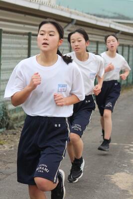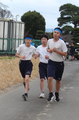 校内駅伝持久走大会 投稿: 金田南中学校 (16:25) 本日、校内駅伝・持久走大会を開催しました。はじめに全員参加の「持久走の部」、その後でクラス選抜選手による「駅伝の部」が行われました。この大会に向けて、各クラスで朝練を行ってきました。本日までの活動をとおして、生徒たちは大切なものを得たことと思います。 【開会式で選手宣誓】 【閉会式で表彰】 【持久走の部 女子】 【持久走の部 男子】 【駅伝の部】 Tweet -