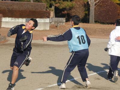全校体育は鬼ごっこ 投稿: 金田南中学校 (15:08) カテゴリー: 全校生徒 12月17日(水)の放課後は全校体育〝鬼ごっこ〟 校庭全部を使って鬼のメンバーが市民を追いかけます。 捕まった囲みの中の市民を助けるために挑戦する市民。鬼も市民も全力です。 真剣です笑顔で楽しそう3年生 真剣な走り全校体育で楽しく運動 Tweet -