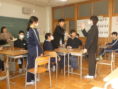 11月23日与一伝承館で行われた那須音羽の会講話会に、金田南中学校3年生5名と黒羽中学校の生徒4名が参加してきました。