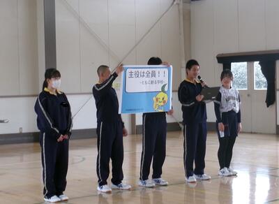 1年生を対象に生徒会と部活動の紹介。生徒会執行部の紹介